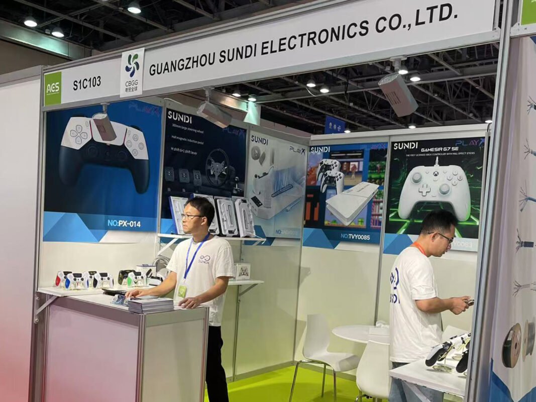 The core highlight of the exhibition stand is undoubtedly the latest flagship gaming controller and the series of high-performance gaming accessories launched by SUNDI.