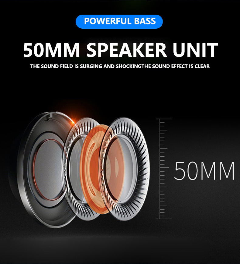 - Powerful Bass: 50mm speaker unit, the sound field is surging and shockingthe sound effect is clear