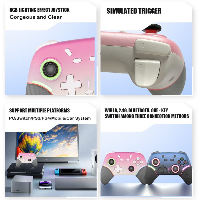 The X9 Wireless Gaming Controller is a versatile and visually striking gamepad designed for modern gamers. It connects seamlessly via Bluetooth to a wide range of devices, including Android phones, iOS devices, tablets, and PC, eliminating the need for cumbersome wires. Its most immediate appeal is the vibrant RGB lighting, which adds a dynamic and customizable aesthetic to your gaming sessions. Built with an ergonomic design intended for comfort during long play periods, it serves as an affordable and feature-rich entry point for enhancing mobile, computer, and console gaming experiences across multiple platforms.